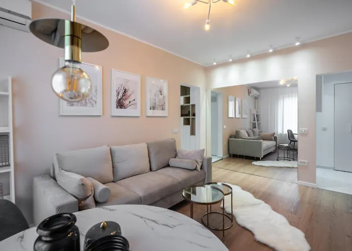 Nell'appartamento di 60 m² Poweli 2 City Center gli ospiti possono usufruire di un angolo cottura attrezzato con un bollitore e un forno. La fermata dell'autobus Colegiul Economic Virgil Madgearu è a una distanza di 350 metri dall'alloggio.